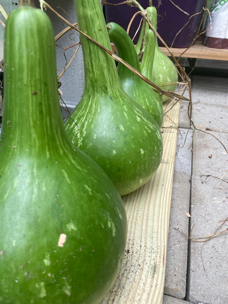 Speaking of the vegetable garden, some of the birdhouse gourds I’d planted in spring had been knocked down from their trellis in a recent storm. I went ahead and collected them and placed them to begin drying out in the greenhouse. My plan is to eventually paint them and give them away as presents to family and friends. While I did manage to get the garden prepped for my fall/ winter crops, I’ve yet to get those seeds sown and I’m running out of time. Hoping to do it soon!